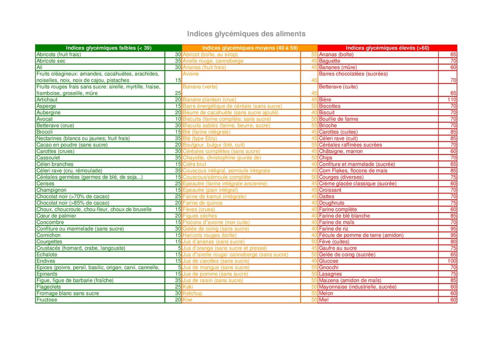 - Choisir des aliments à faible index glycémique (voir le tableau).
