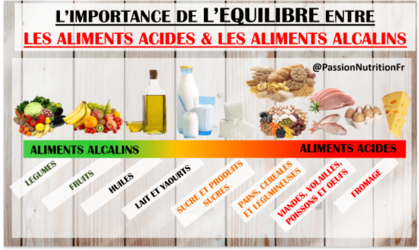 - De l’alimentation, soit parce que les produits de digestion de ces aliments sont acides, soit parce que l’utilisation de ces aliments par l’organisme génère la production d’acides.